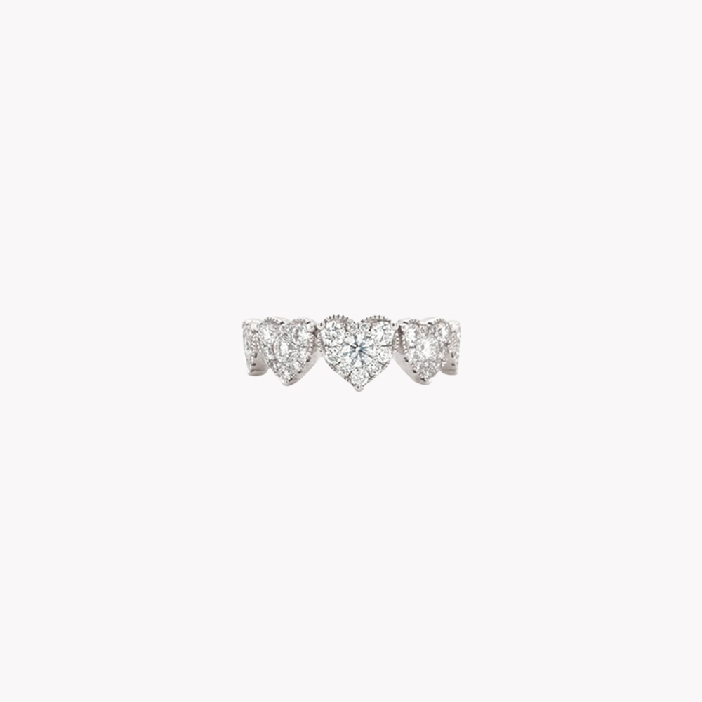 Anello 5 cuori magic a scalare in oro bianco 18kt con diamanti taglio brillante: