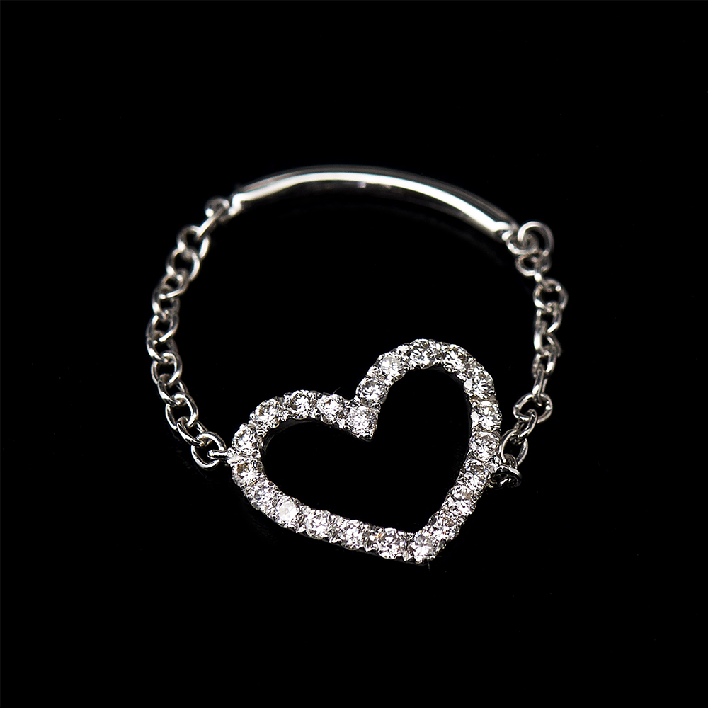 Anello con catena morbida in oro bianco, giallo o rosa 18kt e cuore in pavè di diamanti bianchi: