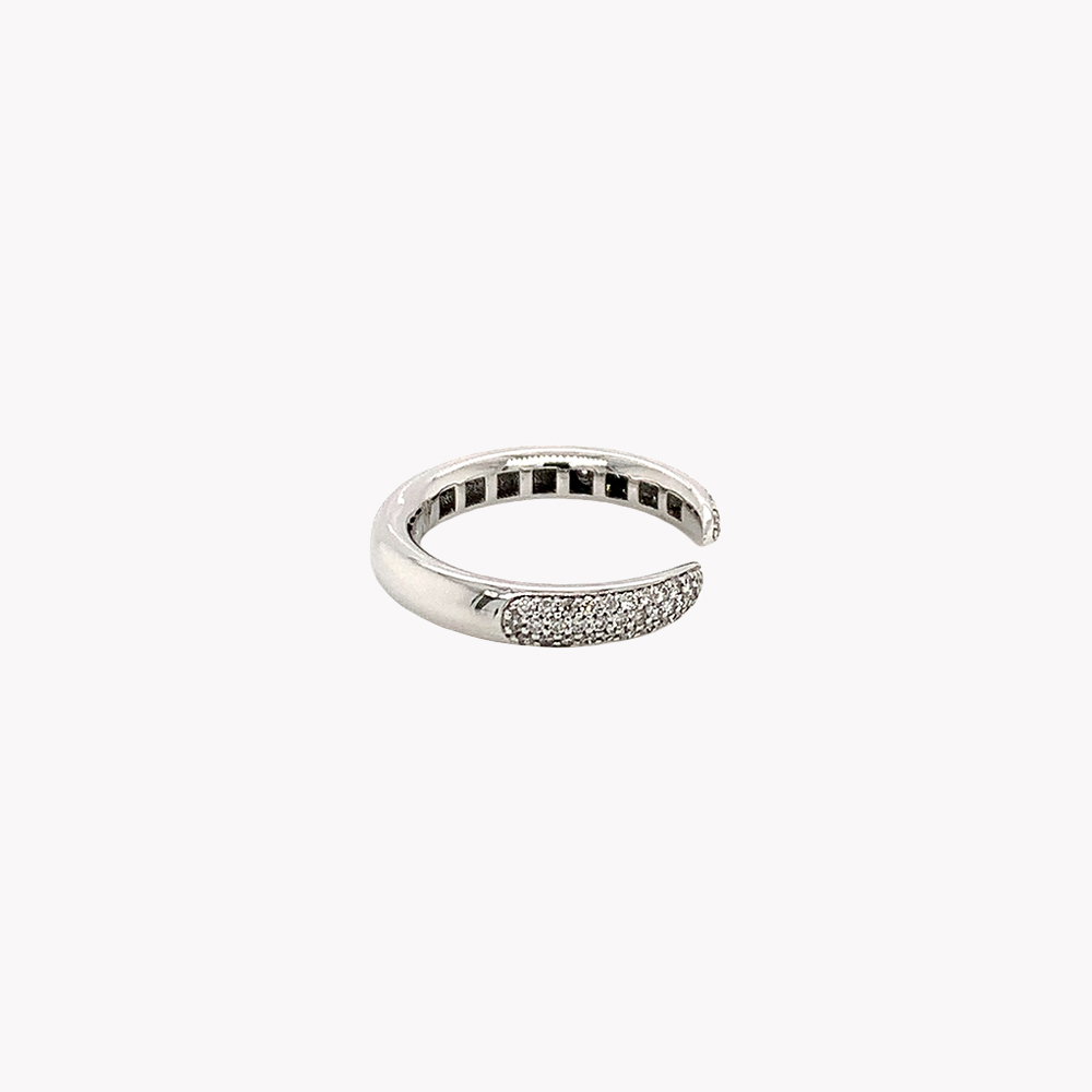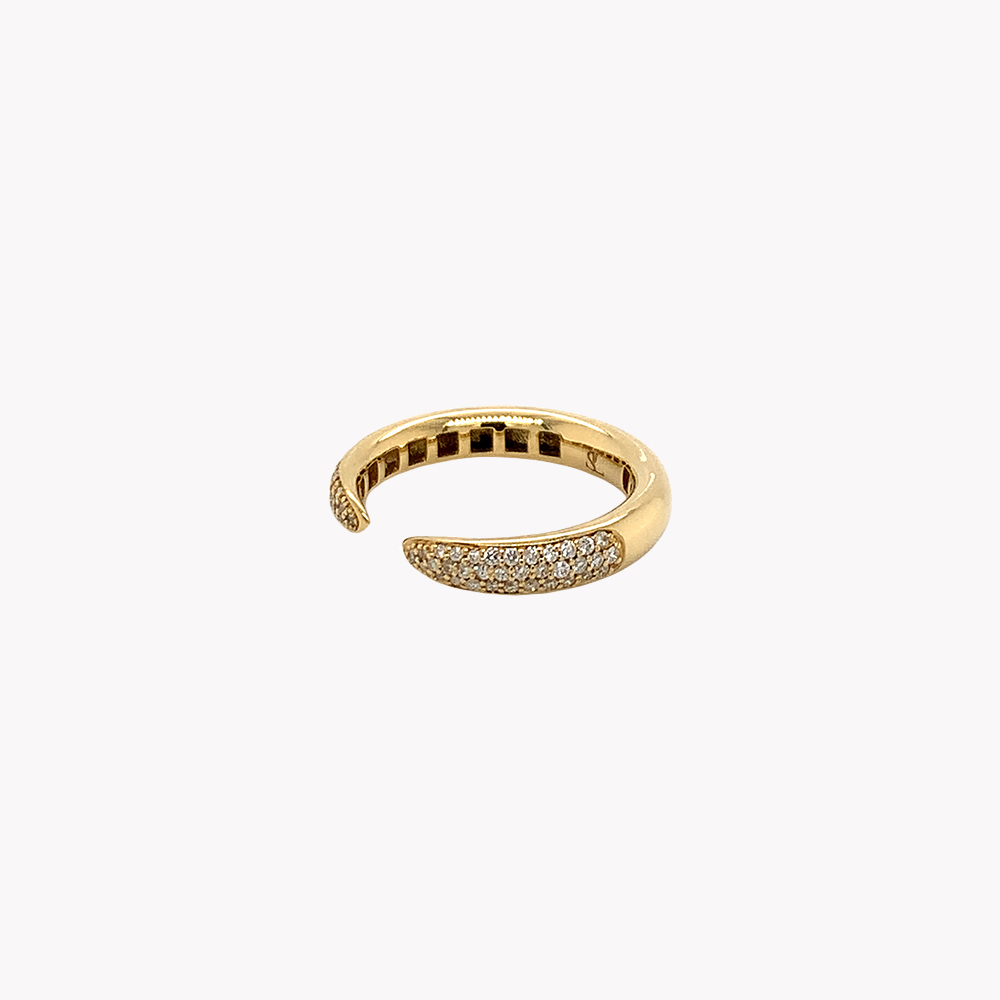 Anello “Fiamma” in oro 18kt bianco, giallo o rosa e pavé di diamanti bianchi.