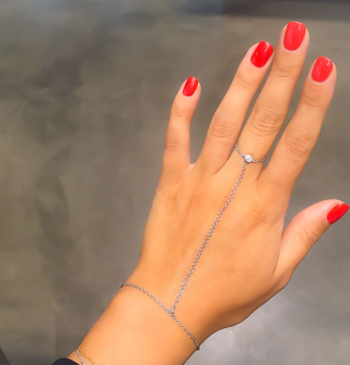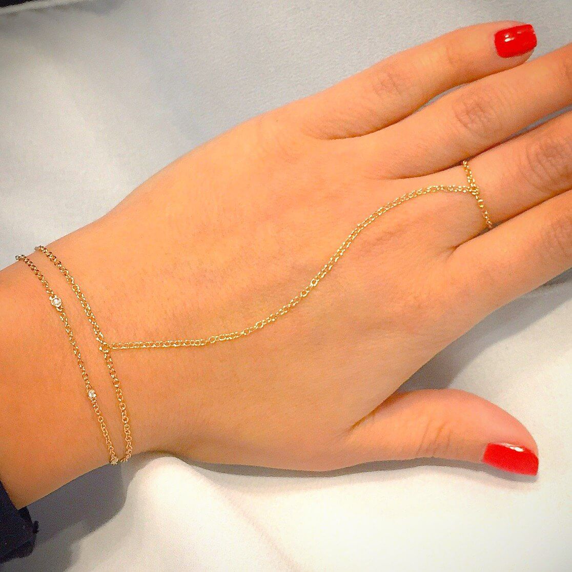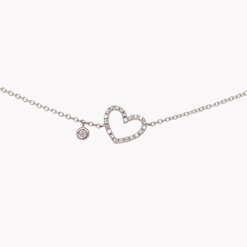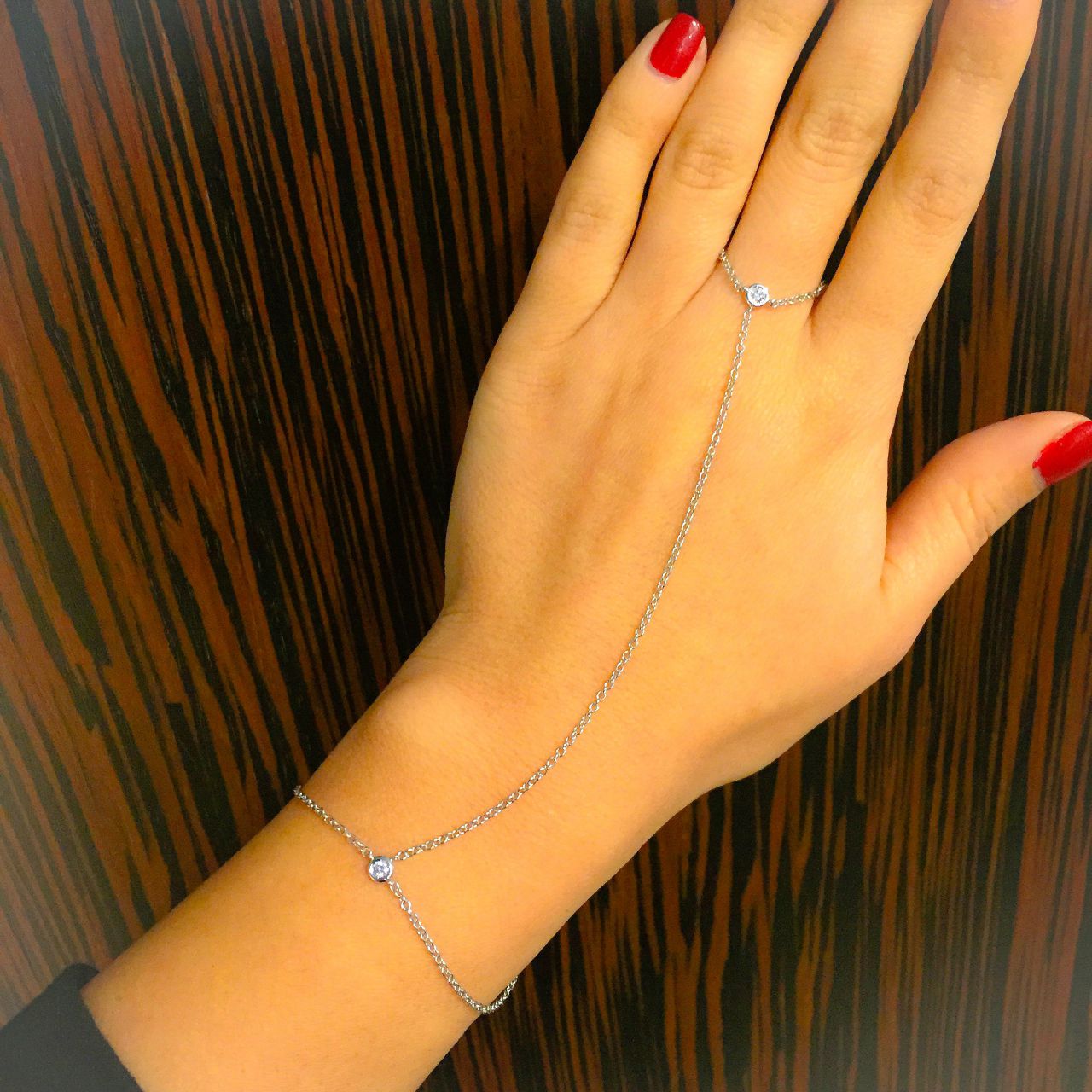Baciamano in oro bianco 18kt con 1 diamante su anello e 1 diamante su bracciale: