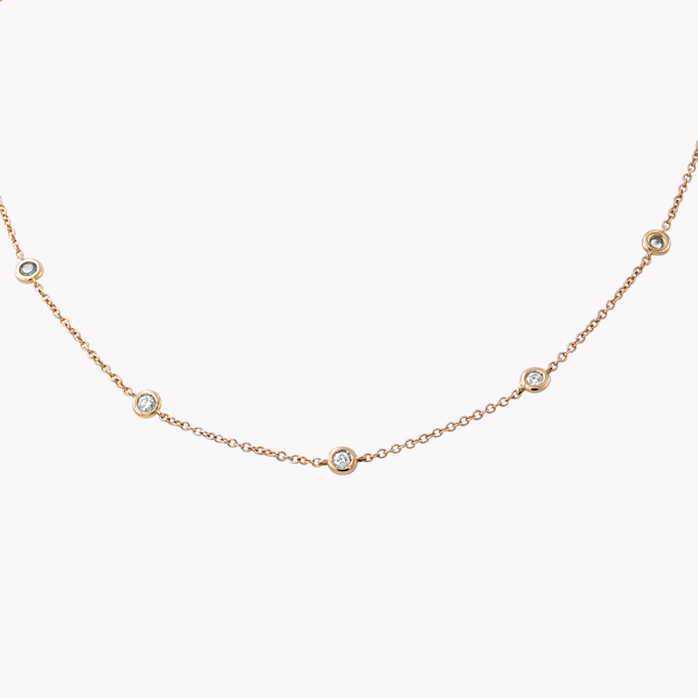 Collana girocollo  in oro rosa 18kt con 11 diamanti: