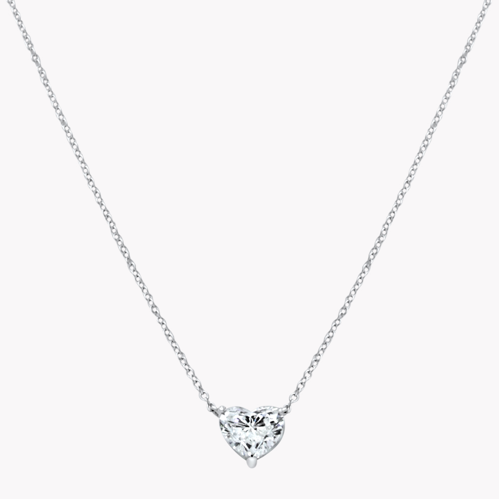 Collana in oro bianco 18kt con diamante taglio cuore ct 2,28 e catena con 6 diamanti taglio brillante: