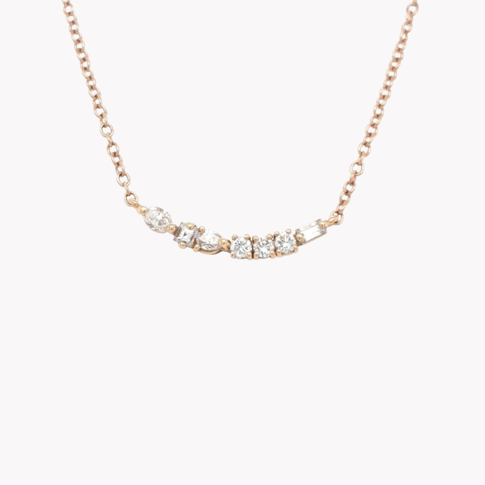 Collana in oro rosa 18kt con smile composto da diversi diamanti forma fantasia:
