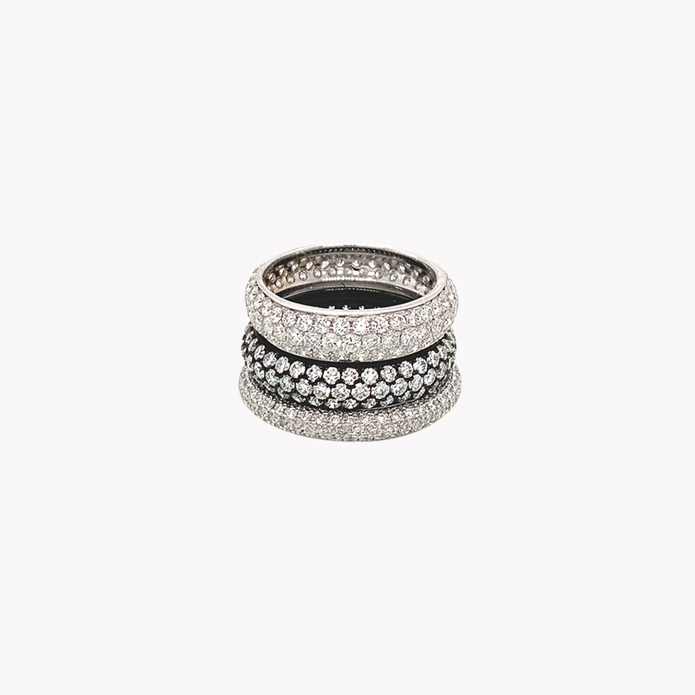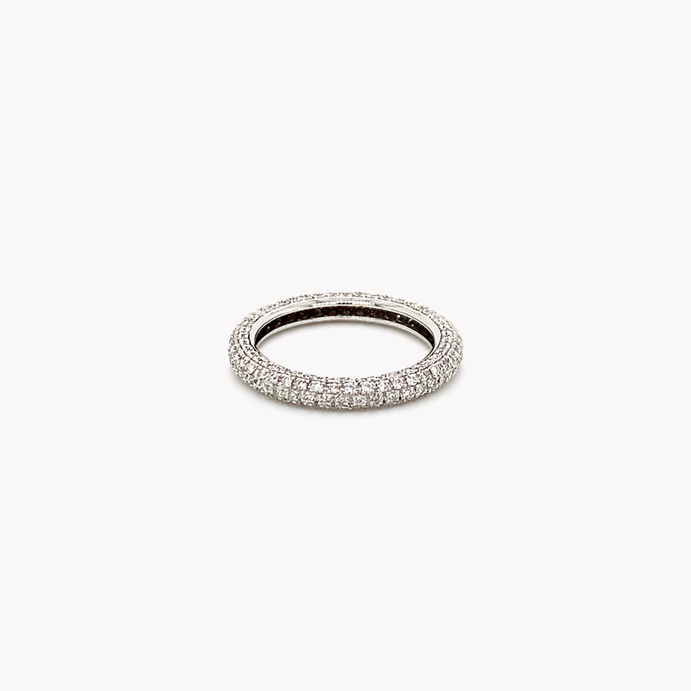 Fedina “Bombata Small” tutto giro in oro bianco 18kt e pavé di diamanti bianchi :