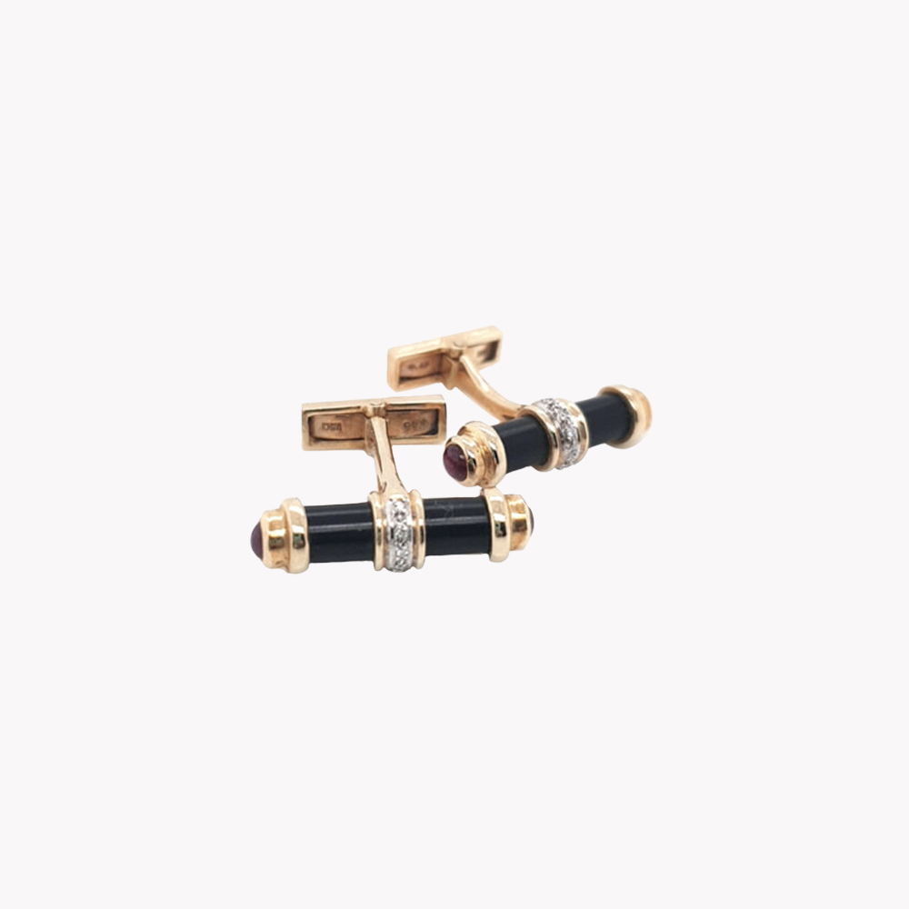 Gemelli in oro giallo 18kt con onice nera e diamanti bianchi