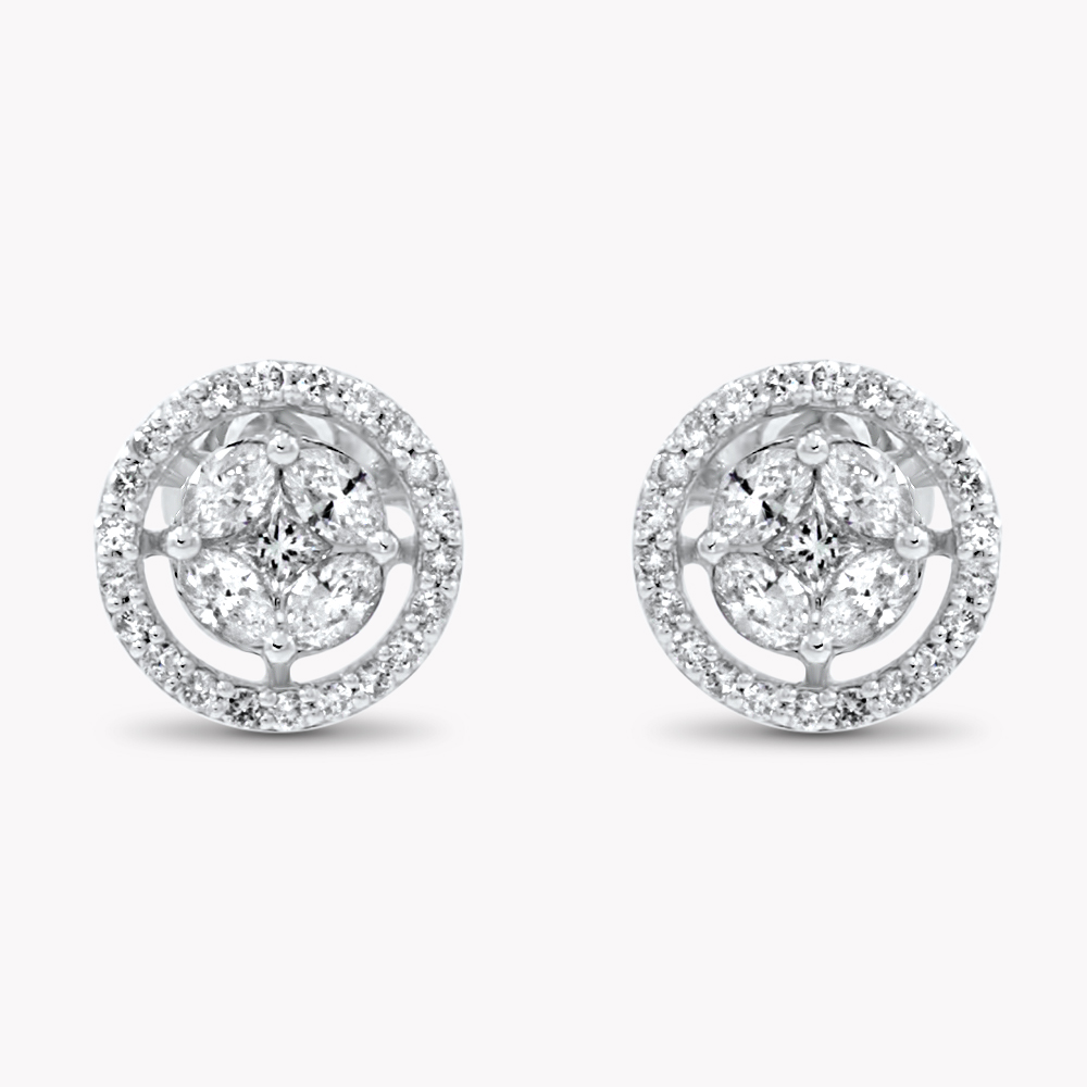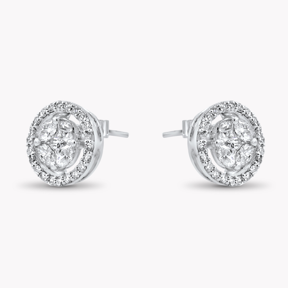 Orecchini a lobo invisible setting in oro bianco 18kt e set di diamanti bianchi marquise e rotondi taglio brillante: