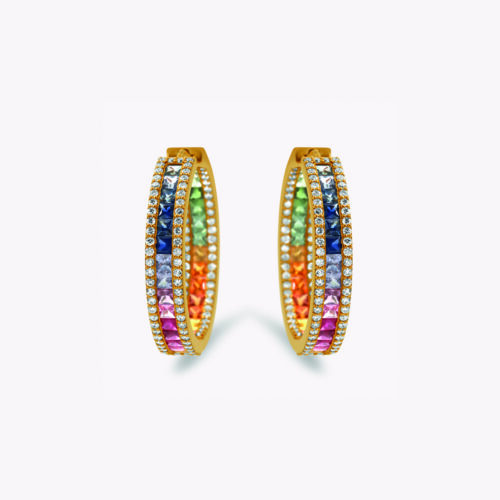 Orecchini cerchietto in oro giallo, rosa o bianco 18kt e set di diamanti bianchi taglio brillante.