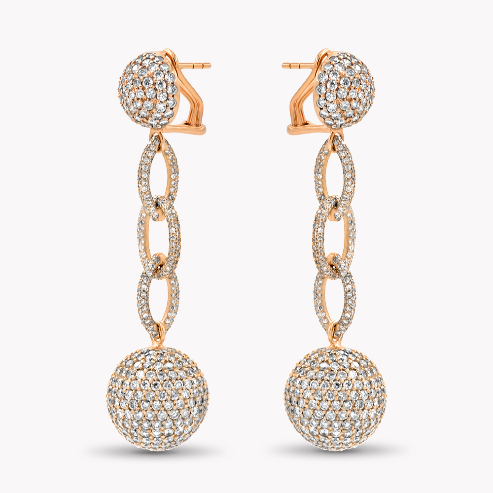 Orecchini Pendenti “Disco” in oro rosa 18kt e pavé di diamanti bianchi