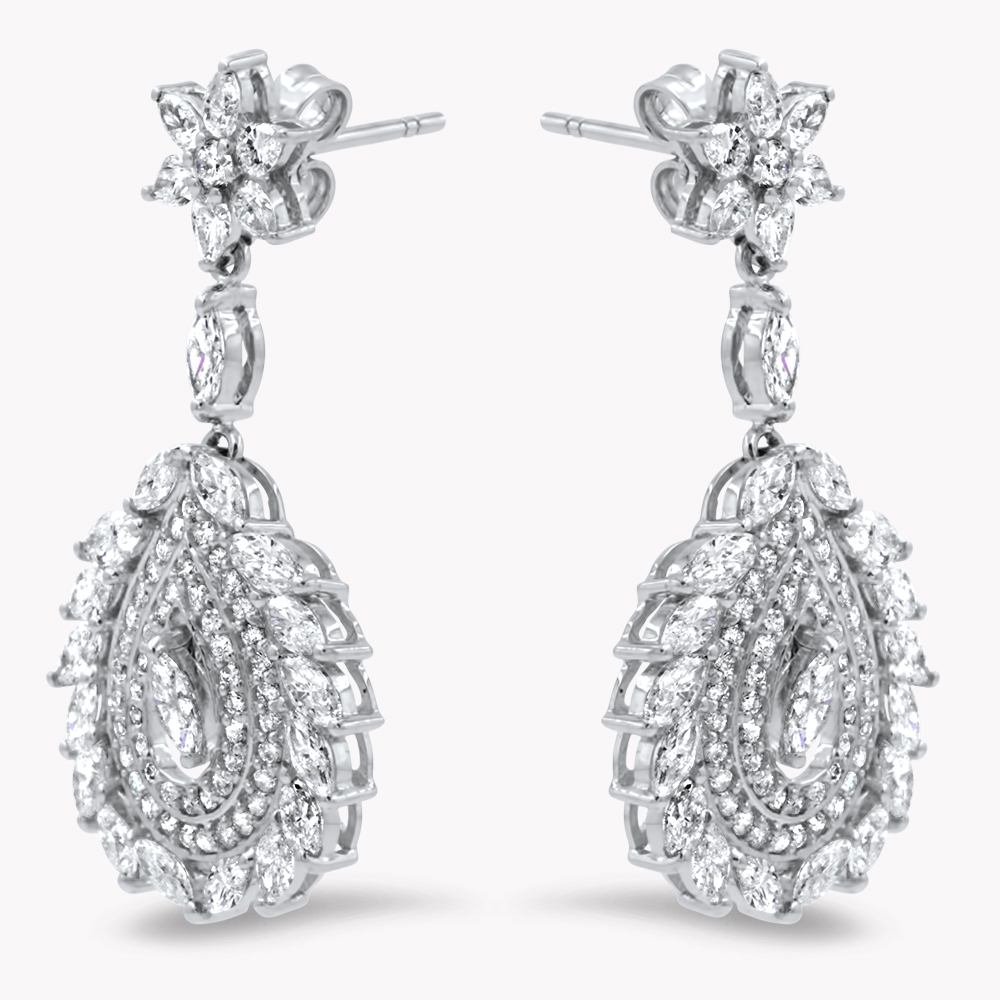 Orecchini pendenti “GIGLIO” in oro bianco 18kt e diamanti bianchi marquise e rotondi taglio brillante: