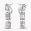 Orecchini pendenti “INVISIBLE CARRE” in oro bianco 18kt e set di diamanti bianchi baguette e rotondi taglio brillante:
