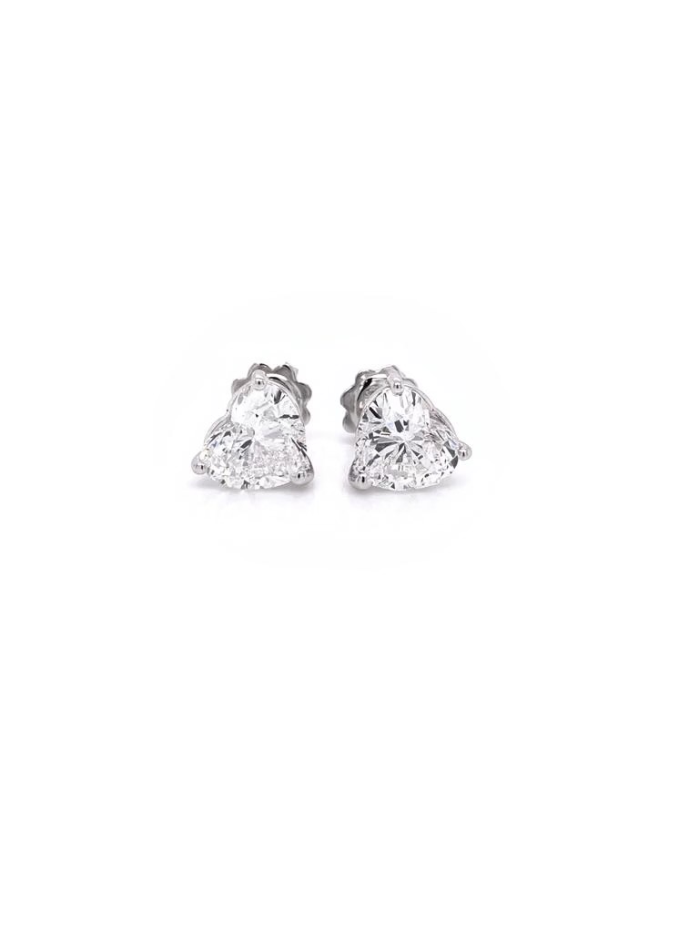 Orecchini punto luce con montatura in oro bianco 18kt e diamanti centrali taglio a cuore. Disponibili per la realizzazione in diverse carature su richiesta: