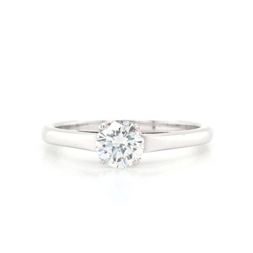 Anello solitario in oro bianco 18kt e diamante centrale rotondo taglio brillante. Modello classico quattro griffe SUN27908 realizzabile su richiesta a partire dai 0.30ct a salire: