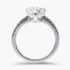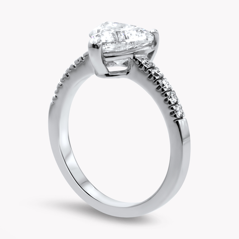 Anello solitario “Eternity Heart” in oro bianco 18kt e diamante centrale a cuore. Montatura classica con quattro griffe e pavé di diamanti bianchi sul gambo. Disponibile per la realizzazione su richiesta a partire dai 0,30ct a salire:
