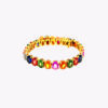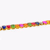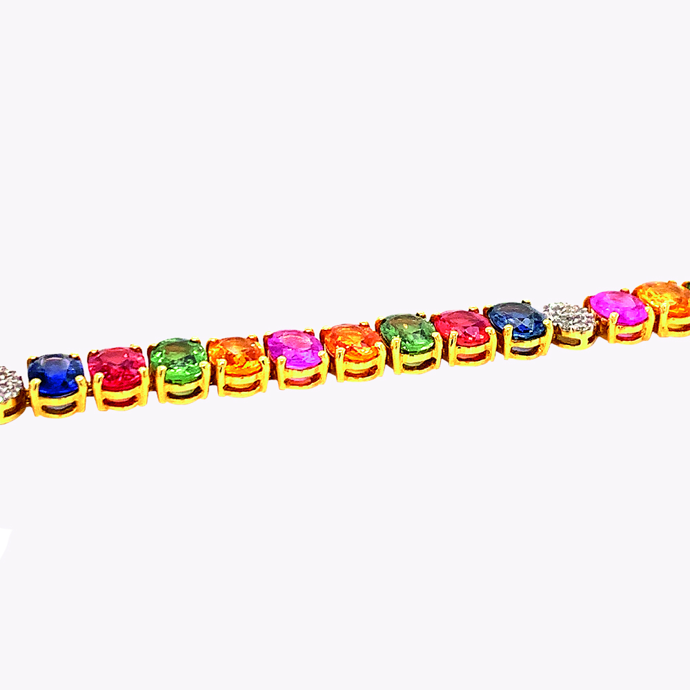 Bracciale tennis in oro giallo 18kt con zaffiri rainbow taglio ovale, intervallati da ovali in pavé di diamanti bianchi: